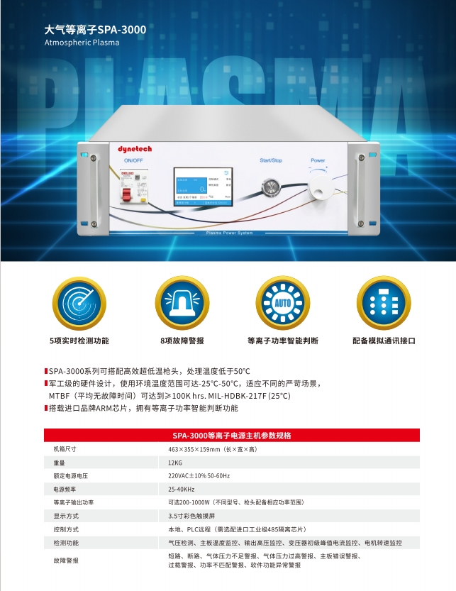 SPA-3600大氣等離子清洗機(jī)采用穩(wěn)定性高的移相全橋軟開關(guān)電路,擁有數(shù)字通信及模擬通信兩種數(shù)據(jù)傳輸方式,通過ARM芯片強(qiáng)大的數(shù)據(jù)處理功能,實(shí)現(xiàn)設(shè)備數(shù)字化控制,完美對(duì)接客戶產(chǎn)線,可達(dá)到中央控制系統(tǒng)統(tǒng)一監(jiān)控,使清洗效果更穩(wěn)定、更持久,抗干擾性能增強(qiáng),減低故障率,控制維護(hù)成本,提高產(chǎn)能,有效減低生產(chǎn)成本。