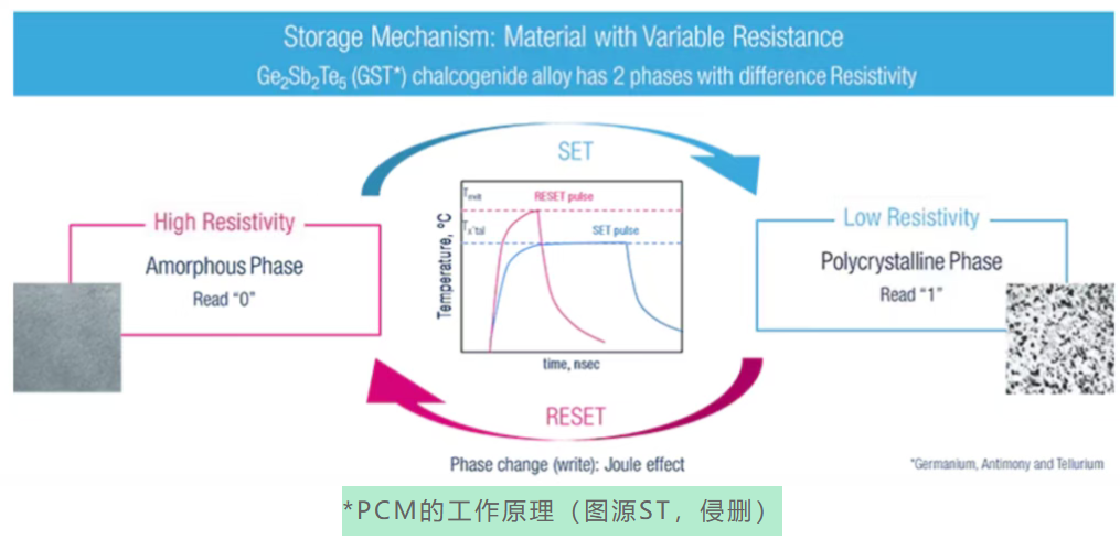 相變存儲(chǔ)器(PCM)是一種利用鍺銻碲(GST)合金材料在非晶態(tài)與晶態(tài)之間發(fā)生快速、可逆相變的特性來(lái)存儲(chǔ)數(shù)據(jù)的非易失性存儲(chǔ)器,具有高速度、低功耗和高存儲(chǔ)密度等優(yōu)點(diǎn),在汽車電子、人工智能計(jì)算、工業(yè)控制等嵌入式領(lǐng)域發(fā)揮著重要作用。